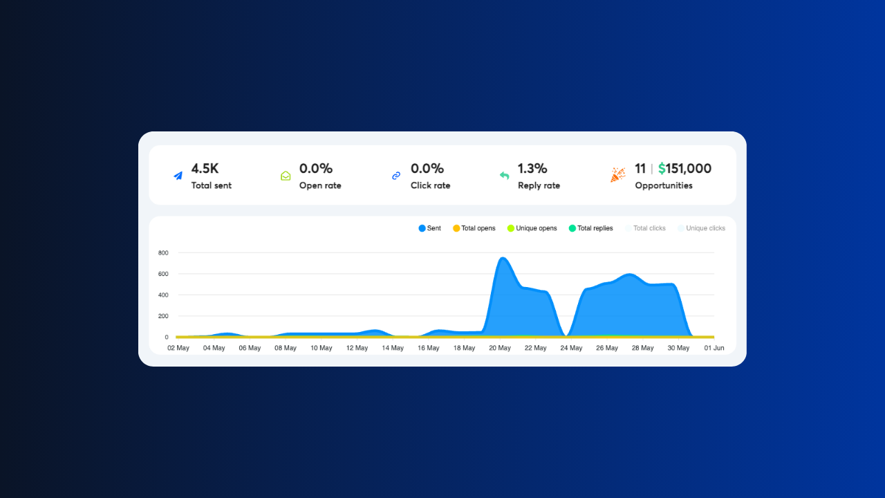 Over 13 days, we launched a precision outbound campaign targeting 4,500 handpicked prospects. With a 1.3% reply rate, we generated 58 responses, 11 qualified opportunities, and built $151,000 in new pipeline — without relying on ads or paid traffic.